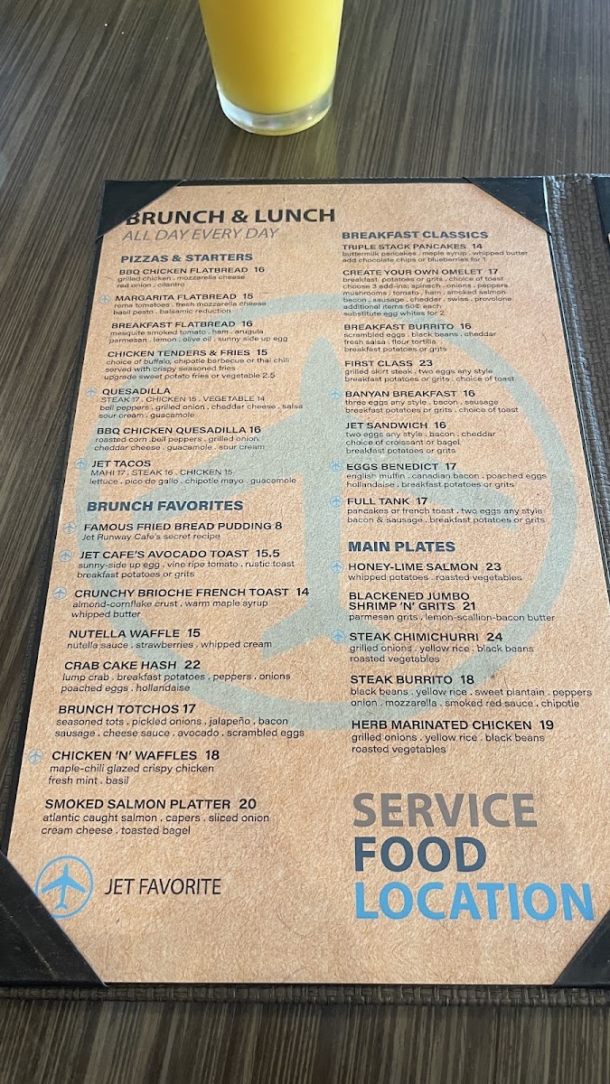 With friendly staff and a vibrant atmosphere, Jet Runway Cafe not only satisfies your hunger but also makes for a memorable dining experience. Whether it's brunch, breakfast, or lunch, this cafe is sure to leave a lasting impression. Come for the food, stay for the views!